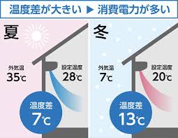 冷房のときに必要以上に低くしたり、暖房で高くしすぎたりすると、エアコンは一生懸命に室温を調整しようとします。