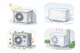 室外機の周囲に物を置いたり、直射日光が当たり続ける状態は、効率低下の原因になります。