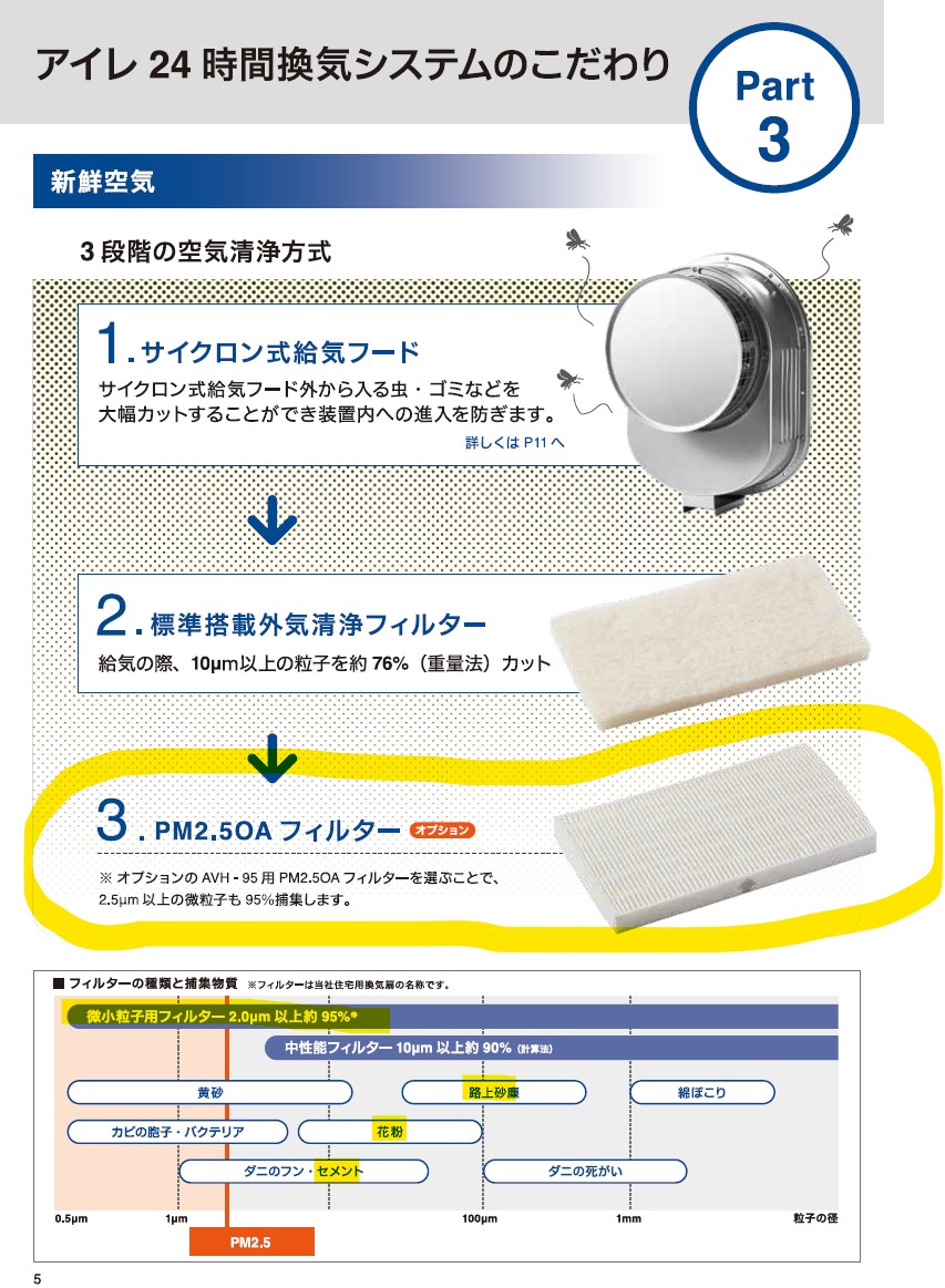 花粉だけでなくホコリなども抑えることができ、アレルギーでお悩みの方にもやさしい換気方法といえます。