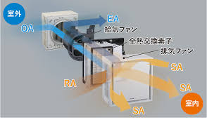 これは、外から入ってくる空気と、室内から外へ出ていく空気の間で熱を交換する技術です。