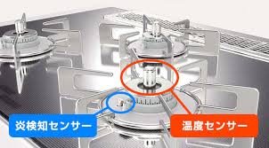 リンナイのガスコンロには、火が消えてしまったときにガスを止めてくれる立ち消え安全装置や、
