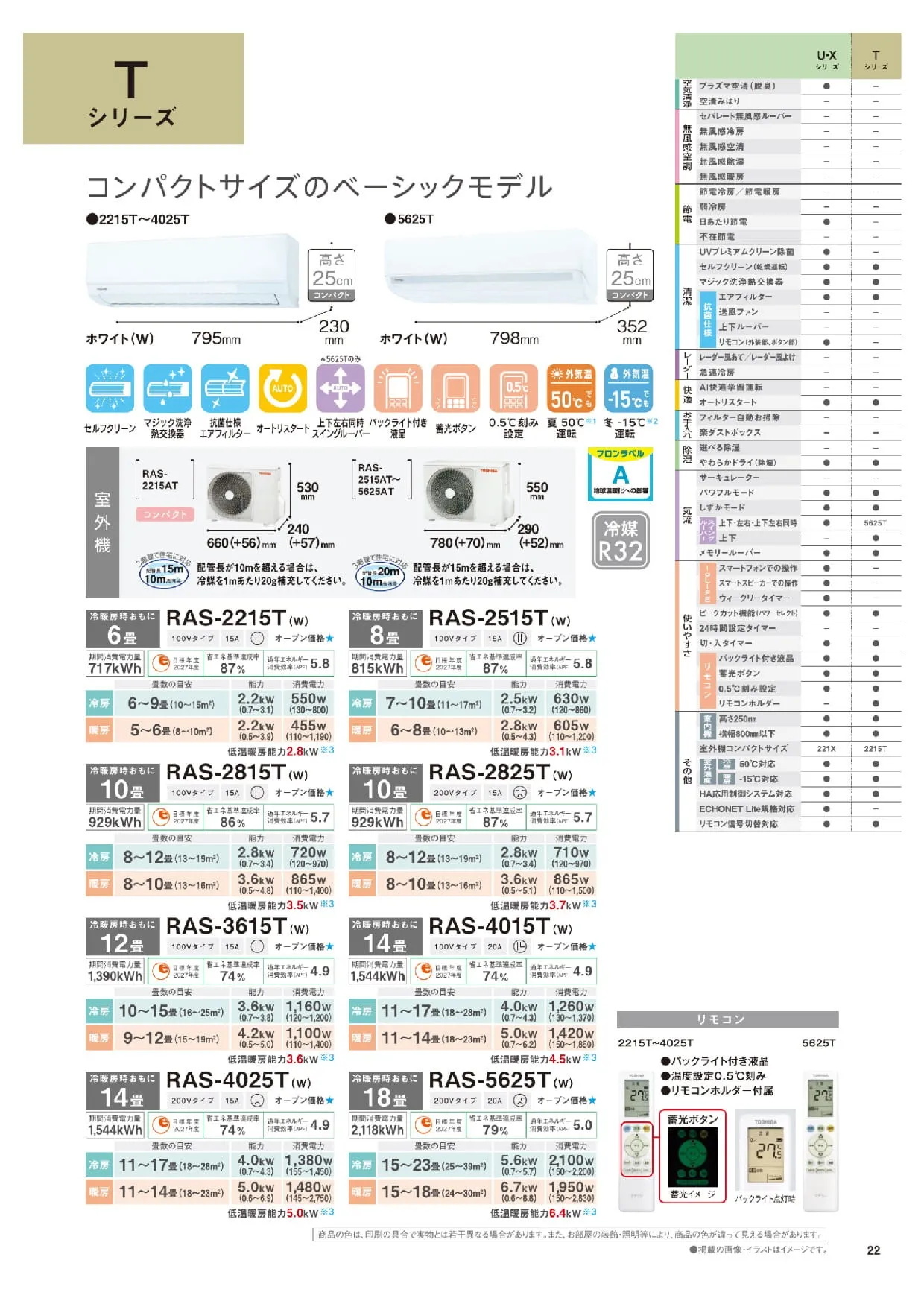 (冷房2.2kW/暖房2.2kW) - 8畳用:RAS-2515T